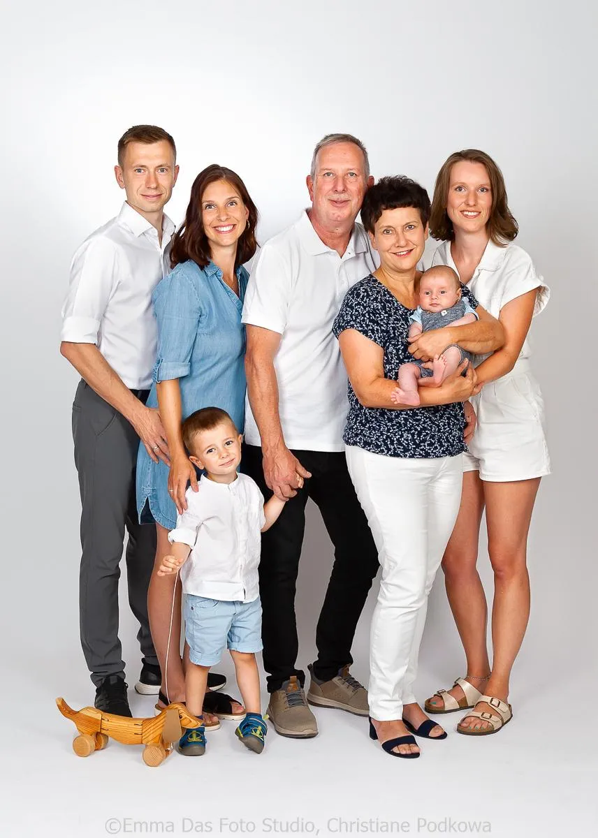 Jede Familie ist eine kleine Welt für sich. Kommen Sie gemeinsam in unsere Welt. Ein Generationenfoto mit Großeltern, Eltern, Kindern und Enkelkindern ist nicht nur eine großartige Geschenkidee, sondern auch wunderschöne Erinnerung. Die lockere Atmosphäre im Fotostudio, Einfühlungsvermögen, Respekt, Erfahrung und Humor machen schon aus dem Fotoshooting ein kleines Event für Ihre Familie.